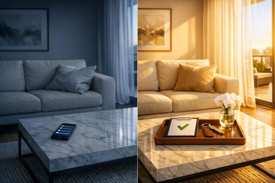 | Noise Complaint | Contacts the guest directly, with results depending on guest cooperation | Follows a documented protocol, including relocating the guest or involving a local contact to resolve the issue | DIY: Risk of platform penalties. Professional: A structured approach protects the property’s reputation. |